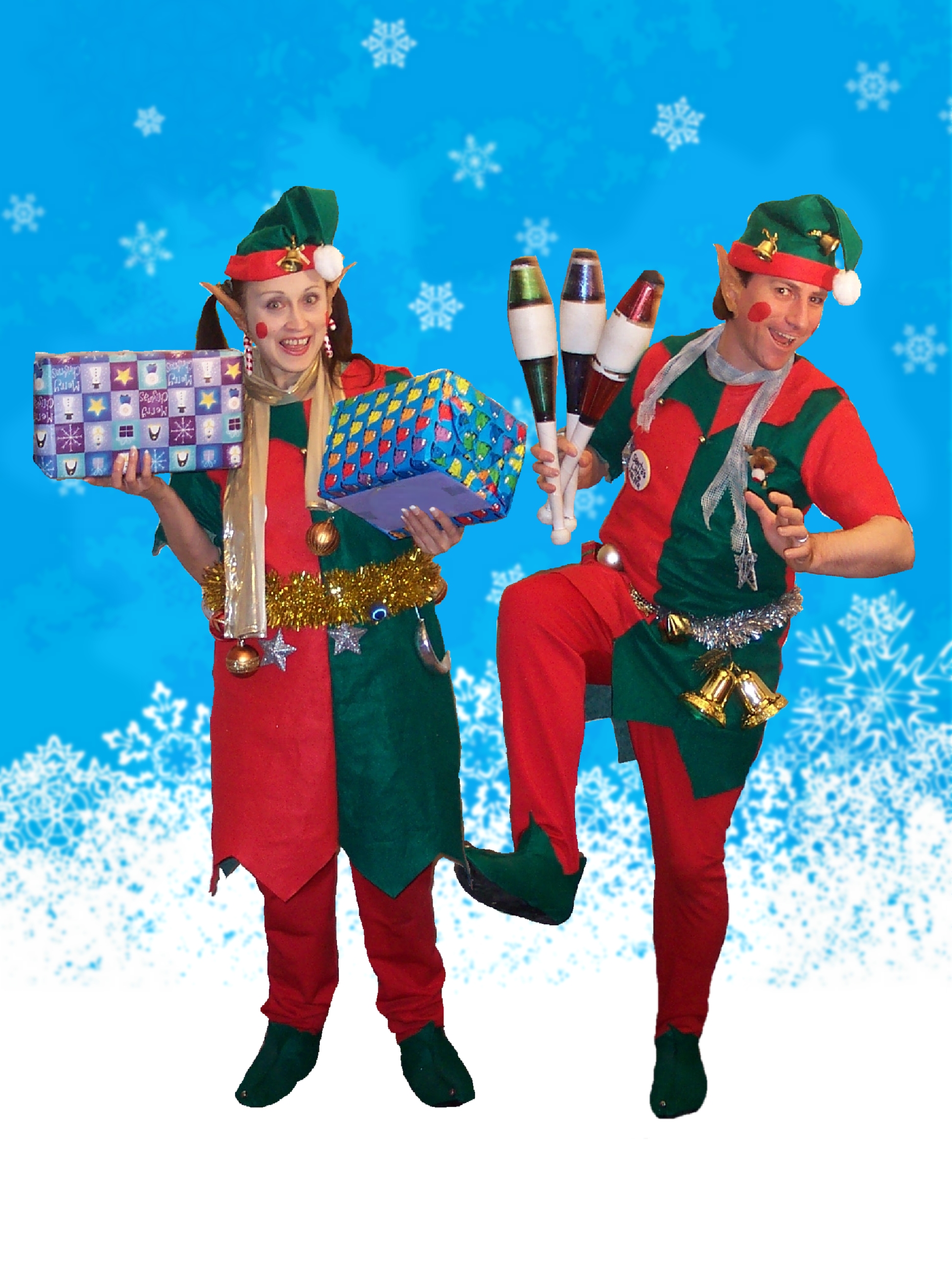 Childrens entertainers for Christmas parties, grottos and events. Santa claus and his elves. Hire an elf or two to entertain your guests at your event, party or grotto with balloon modelling, juggling, magic, meet and greet and as Santa's assistants. our Christmas performers entertain at events across South England and Wales from London, Sussex and Surrey through Wiltshire, Gloucetsershire, Bristol and Bath to Cardiff, Swansea, Newport, Powys, Monmouth and Caerphilly |